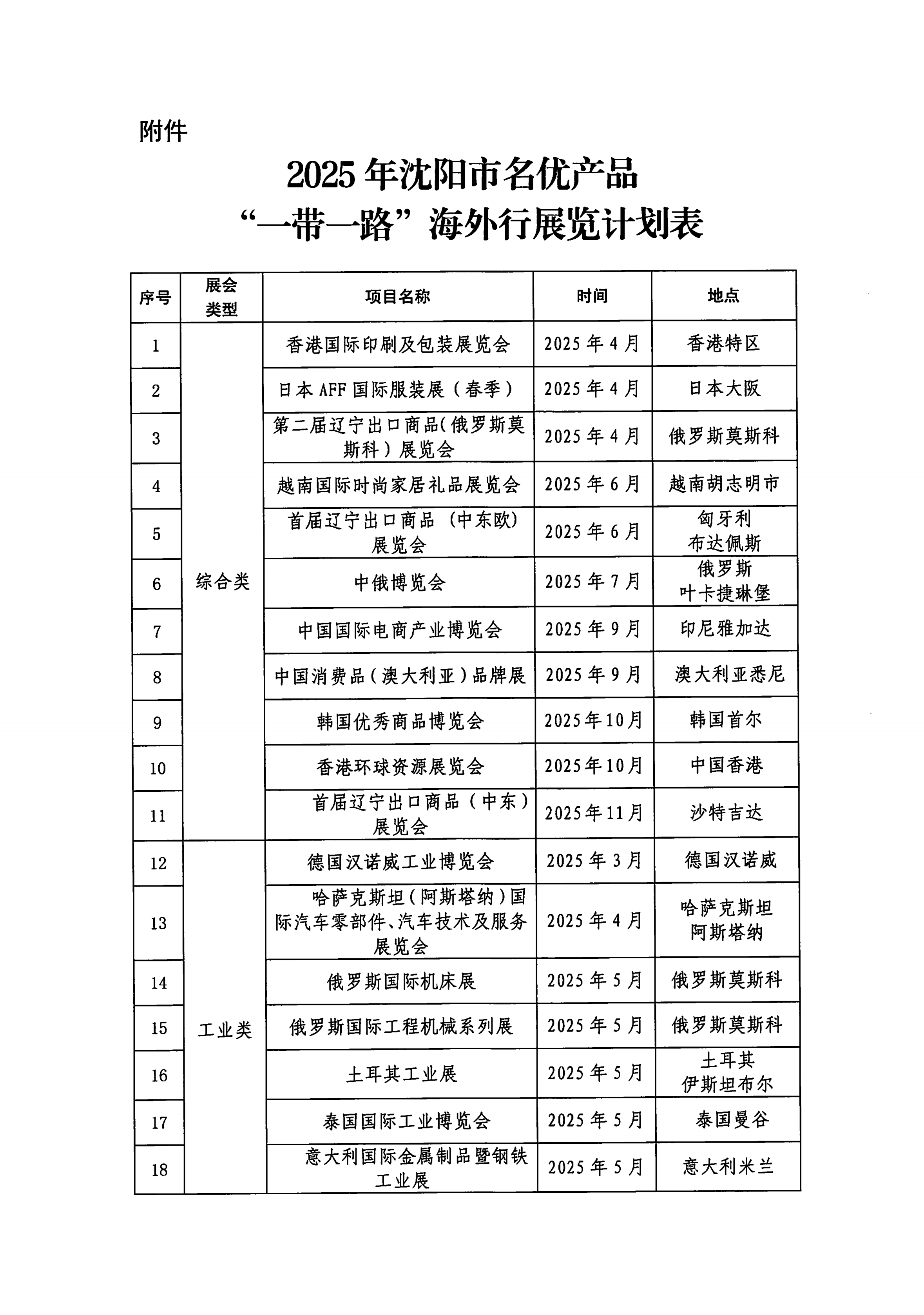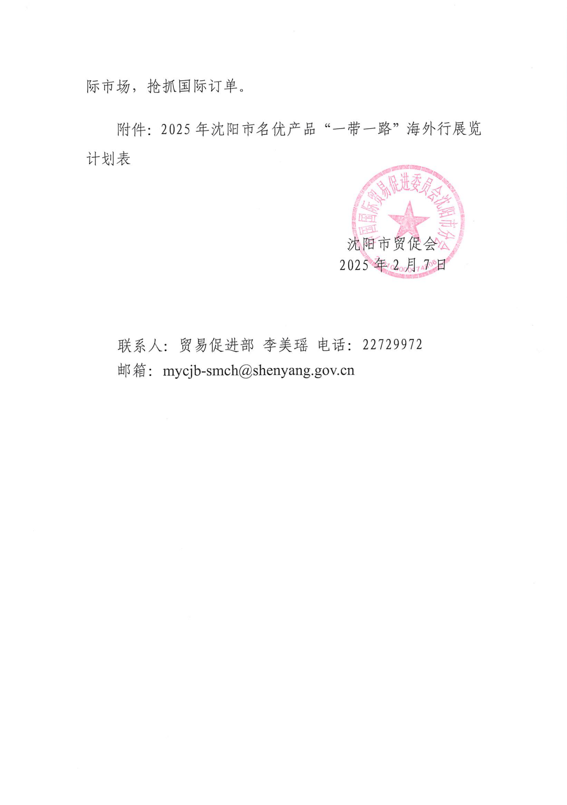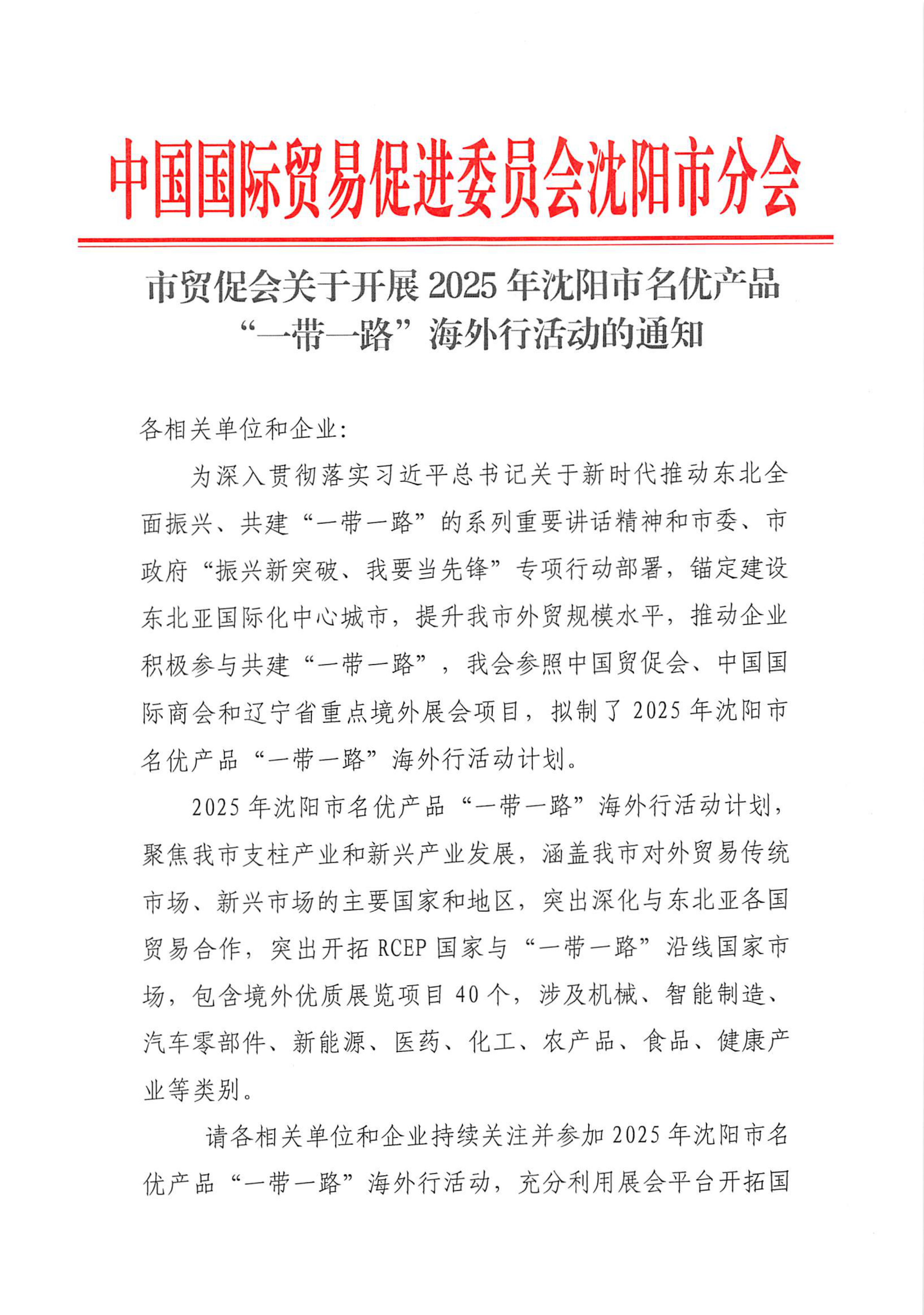 公海彩船在线客服關於開展2025年沈陽市名優產品 “一帶一路”海外行活動的通知