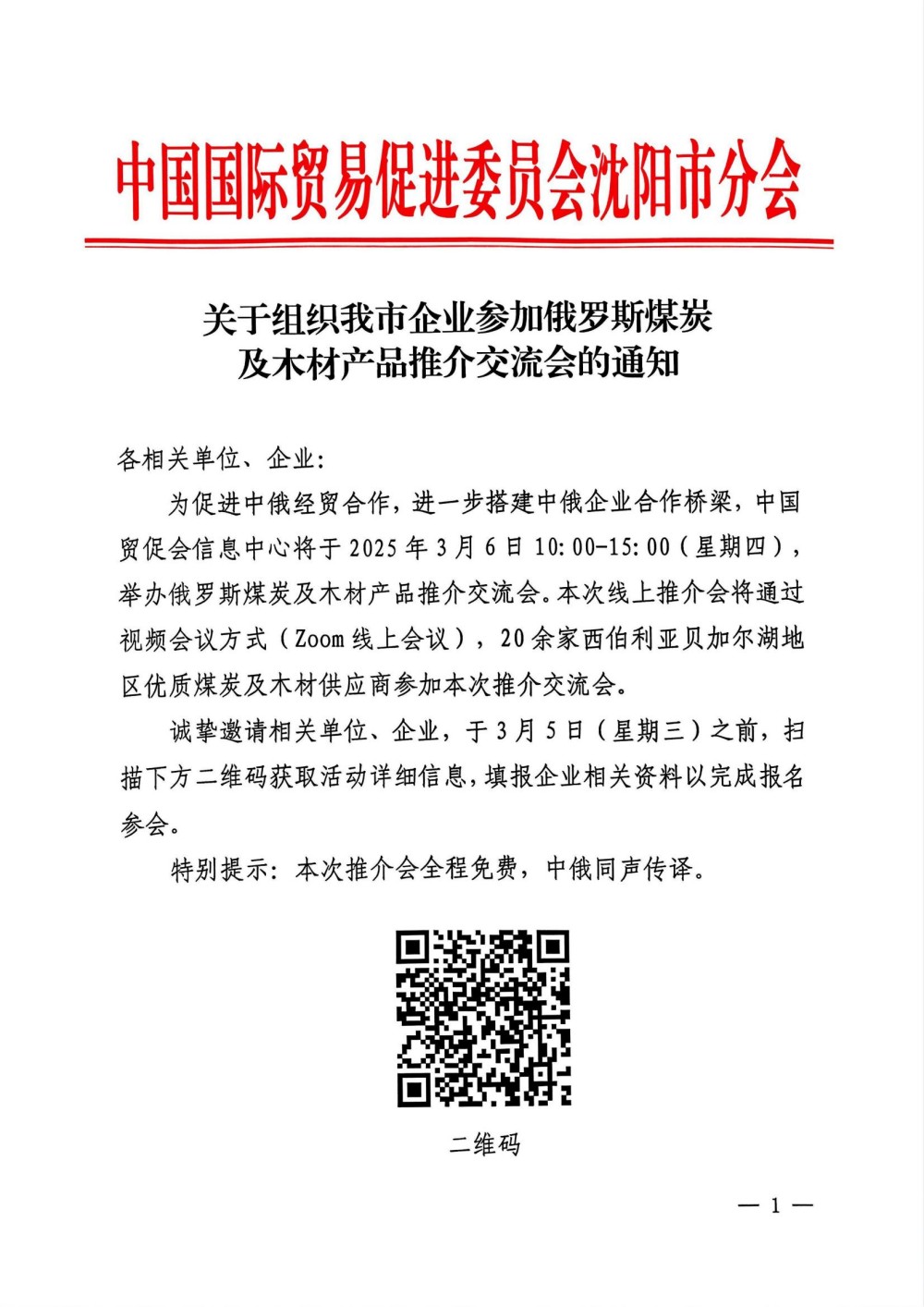 關於組織我市企業參加俄羅斯煤炭及木材產品推介交流會的通知